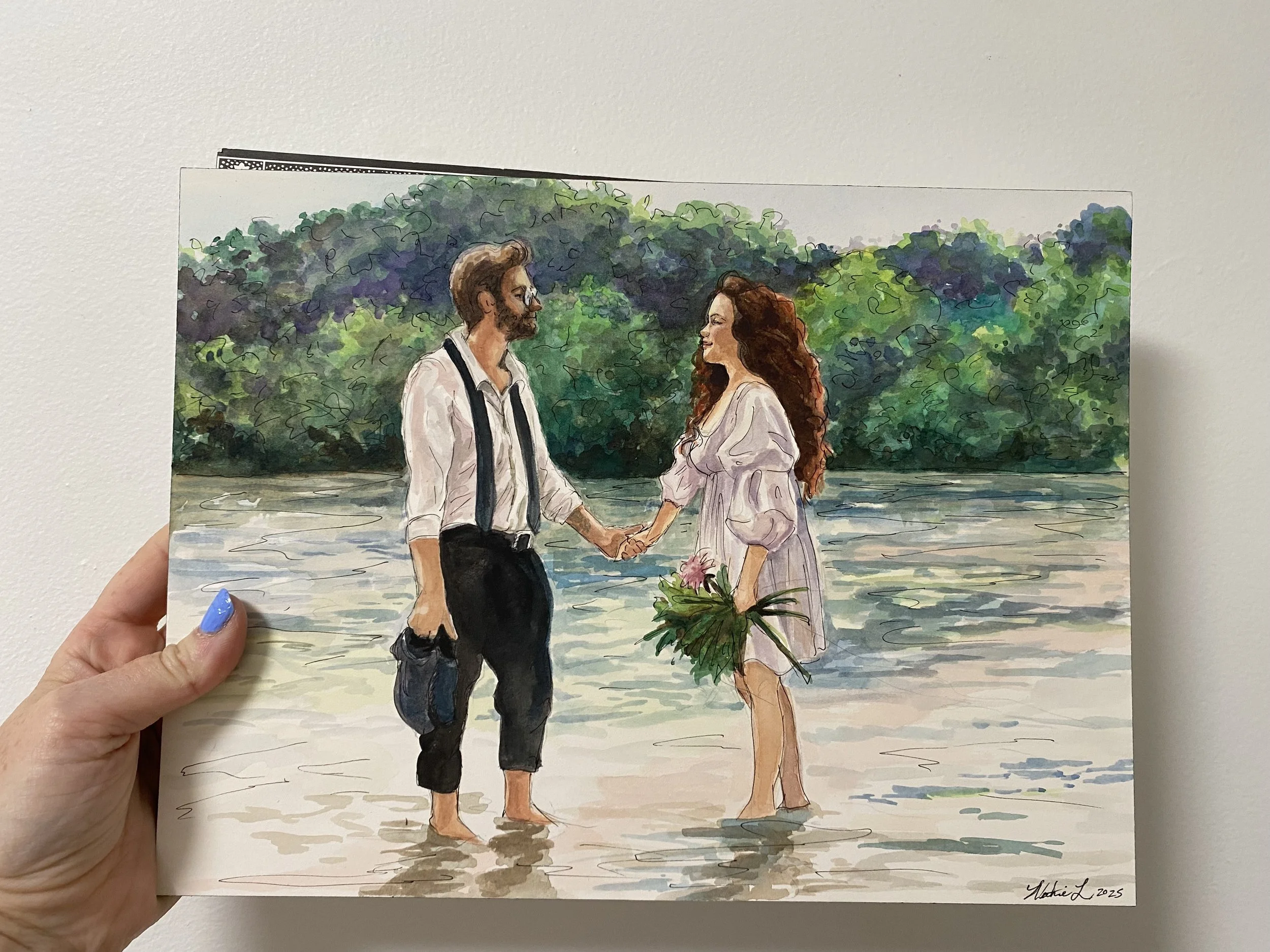 Butler Wedding Painting Watercolor Guest Portraits Jones Wedding River Wedding Watercolor Watercolor Guest Portraits wedding painting roses Mehndi Ceremony